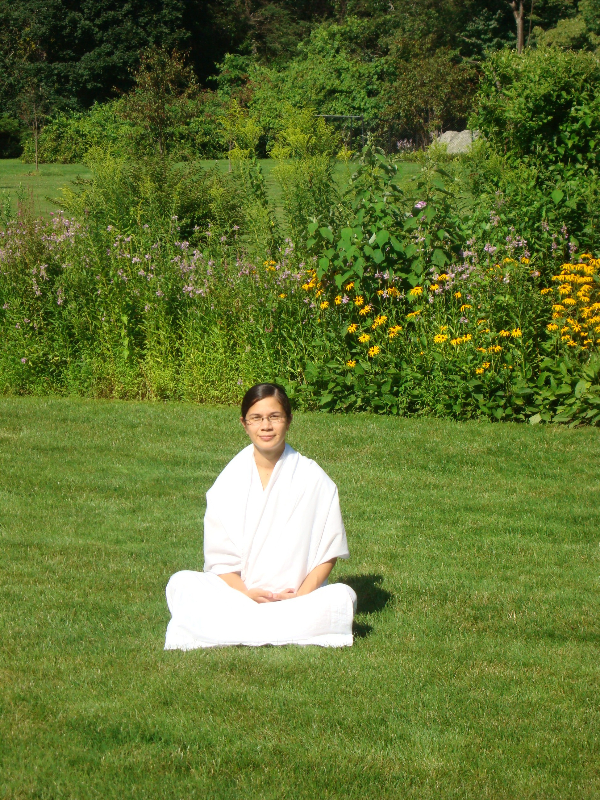 Born and raised in Los Angeles, California, Siddhali Shree moved, after her initiation into monk hood, to a small village called Windom, Texas; about an hour North East of Dallas. Moving from a large city populated in the millions, to a small village with a population of 250 was a very interesting switch. After some adjustment, Siddhali Shree learned to love the idyllic setting and slow pace of Windom and now prefers living in the peaceful countryside rather than return to the frenetic pace of living in the city. She understands the yogic tenet that happiness is not a location and remains “happy wherever I go…”
